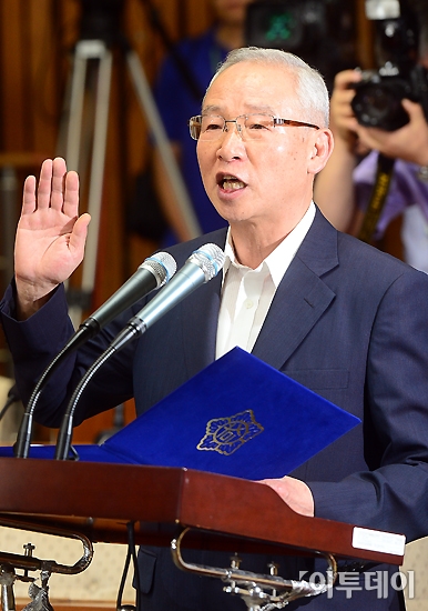남재준 국가정보원장이 5일 오후 여의도 국회에서 열린 국가정보원 댓글 의혹 사건 등의 진상 규명을 위한 국정조사특별위원회 기관보고에 출석해 증인 선서를 하고 있다. 노진환 기자 myfixer@
