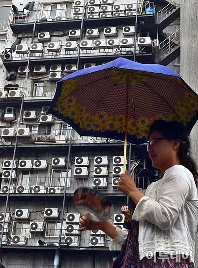 장마가 끝나면서 연일 이어지는 무더위로 전력난이 심화되고 있다. 자칫 국가 위기 상태인 블랙아웃(대정전)이 발생한다면 국가보안시설과 기간시설, 산업생산시설 가동 중단, 은행 전산망 올스톱 등 사회적 대혼란이 올 수 있는 국가위기 상황이다. 국민모두 생활 속 전력 다이어트에 동참한다면 하계 전력위기를 극볼할 수 있다. 5일 오후 서울 중구 남대문로 한 건물 외벽에 에어컨 실외기가 쉴 새 없이 가동되고 있다. 방인권 기자 bink7119@