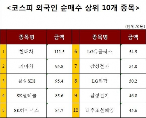 [코스피 외국인 순매수 상위 10개 종목]
