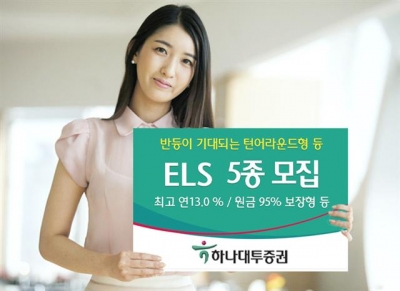 하나대투증권은 주가가 반등할 것으로 기대되는 우량주를 기초자산으로 하는 턴어라운드형 등 ELS 5종을 오는 9일까지 모집한다고 밝혔다.