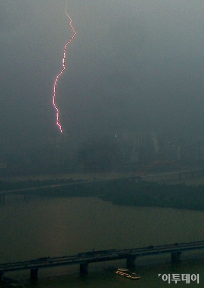 이날 오후 서울과 경기 등 수도권에 돌풍을 동반한 국지성 폭우와 함께 천둥과 번개가 치는 뇌전 현상이 나타났다.