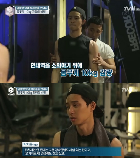 박서준은 지난 6일 tvN 'eNEWS-기자 대 기자: 특종의 재구성'에서 최근 MBC '금 나와라 뚝딱'에 출연하면서 10kg을 감량했다고 전했다.