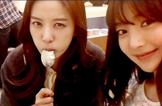 사진 속 이청아는 숟가락을 입에 물고 찡그린 표정을 지으며 카메라를 응시하고 있다. 반면 송민정은 해맑은 미소로 단아한 자태를 뽐내고 있어 눈길을 끈다.