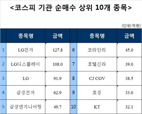 [코스피 기관 순매수 상위 10개 종목]