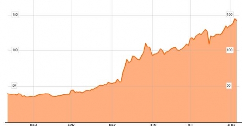 테슬라의 실적 개선과 함께 주가 역시 강세를 지속하고 있다. 테슬라의 주가는 올들어 3배 이상 급등했다.