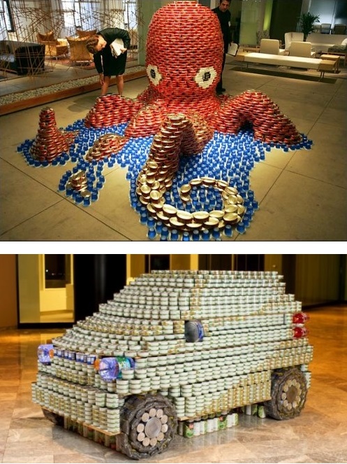 캔으로 만든 대형 인어공주와 헐리우드 배우 마릴린 먼로, 그리고 자동차와 문어 등은 보는 이들에게 즐거움 뿐만 아니라 탄성을 자아낸다.