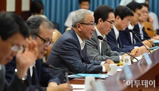 현오석 경제부총리 겸 기획재정부 장관이 8일 오전 서울 세종로 정부서울청사에서 열린 '대외경제장관회의'에서 모두발언을 하고 있다. 방인권 기자 bink7119@