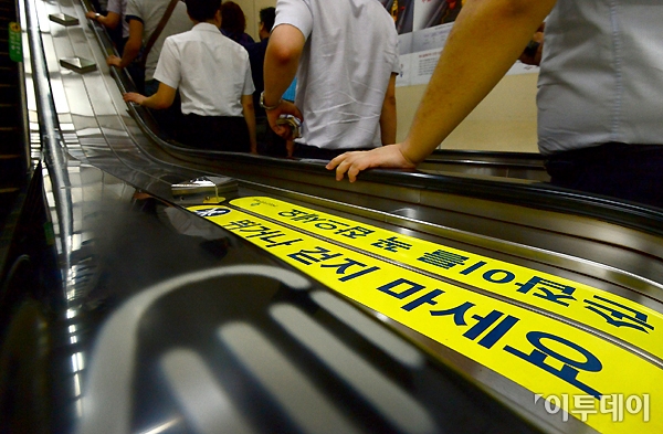 [포토]에스컬레이터 손잡이를 꼭 잡으세요