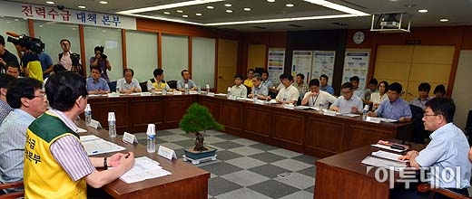 '전력수급위기 대책회의'가 11일 서울 강남구 삼성동 한국전력 회의실에서 윤상직 산업통상자원부 장관의 주재로 열리고 있다. 방인권 기자 bink7119@