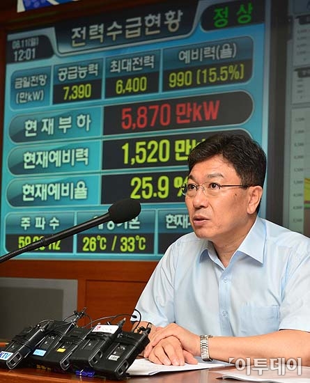 윤상직 산업통상자원부 장관이 11일 오후 서울 강남구 삼성동 한국전력 회의실에서 열린 ‘전력수급위기 대책회의’에서 모두발언을 하고 있다. 방인권 기자 bink7119@