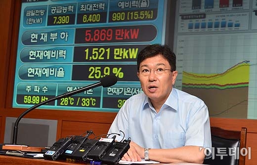 윤상직 산업통상자원부 장관이 11일 오후 서울 강남구 삼성동 한국전력 회의실에서 열린 ‘전력수급위기 대책회의’에서 모두발언을 하고 있다. 방인권 기자 bink7119@
