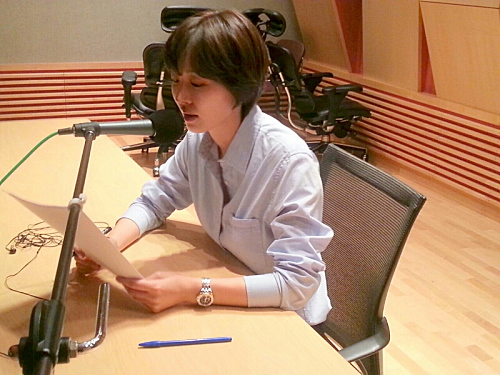 공개된 사진 속 김소연은 녹음실 속 책상에 앉아 대본을 들고 있는 모습이다. 김소연은 짧은 헤어스타일에 하늘빛 셔츠를 입고 내레이션 녹음에 집중하고 있다.