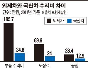 한국수입자동차부품협회는 개정안이 시행되면 대체부품비와 공임이 30% 이상 내릴 것으로 보고 있다. 보험개발원에 따르면 2011년 기준 수입차 평균 부품 수리비는 185만7000원으로 국산차보다 5.4배 비쌌다.