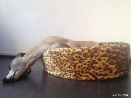 최근 해외 온라인 커뮤니티에는 '늘어지게 자는 개' 사진이 올라와 재미를 주고 있다.