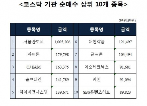 [코스닥 기관 순매수 상위 10개 종목]