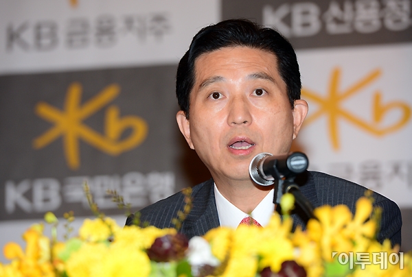 임영록 KB금융지주 회장이 14일 소공동 웨스틴 조선호텔에서 열린 기자간담회에 참석해 취재진의 질문에 답하고 있다. 노진환 기자 myfixer@