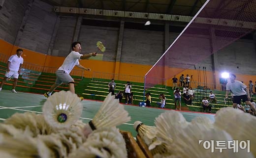 14일 오후 서울 화곡동 KBS 스포츠 월드에서 진행된 KBS '우리동네 예체능' 연습 공개 현장에서 출연진이 구슬땀을 흘리고 있다. 양지웅 기자 yangdoo@