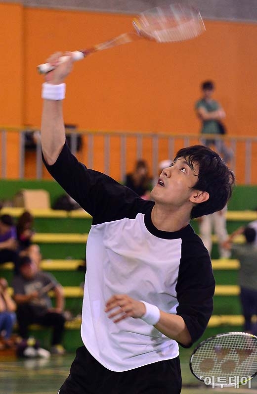 가수 존박이 14일 오후 서울 화곡동 KBS 스포츠 월드에서 진행된 KBS '우리동네 예체능' 연습 공개 현장에서 구슬땀을 흘리고 있다. 양지웅 기자 yangdoo@