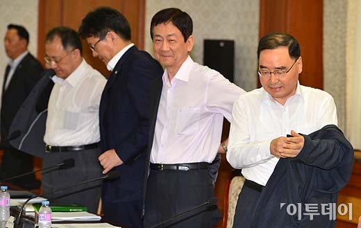 [포토]자켓 탈의하는 정홍원 총리와 국무위원들
