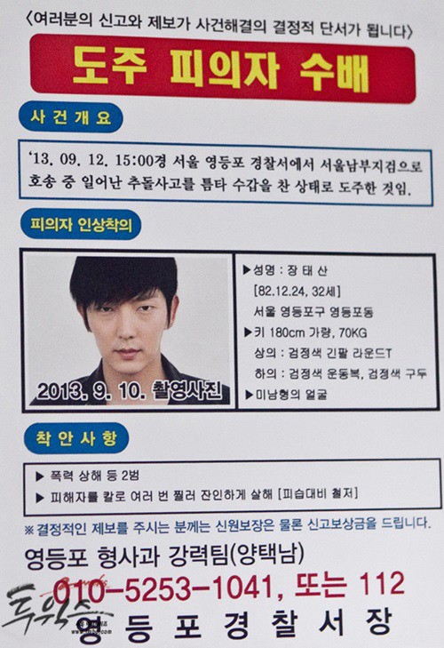 공개된 '이준기 수배전단' 사진은 드라마 '트윅스'에서 사용된 것으로 극중 장태산(이준기 분)의 키와 몸무게 등 프로필 정보가 담겨 있다.