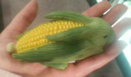 자세히 살펴보면 이 토끼는 진짜 토끼가 아닌 옥수수를 이용해 만든 가짜 토끼다.