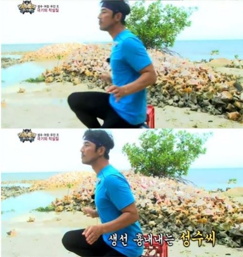 김성수는 제작진 앞에서 다리를 구부린 채 온 몸을 이용해 생선 흉내를 내 보는 이들의 웃음을 자아내기도 했다.
