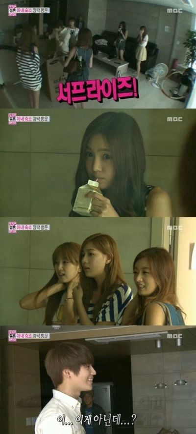 이날 태민은 냉장고 박스에 숨어 손나은과 에이핑크 멤버들을 깜짝 놀라게 해 줄 계획을 세우고 그대로 실천하는 과감한 모습을 보였다.