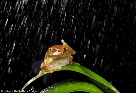 망연자실 개구리 포착 사진을 찍은 브리저는 "개구리는 마치 비 때문에 골머리를 앓는 듯 보였다"고 설명했다.