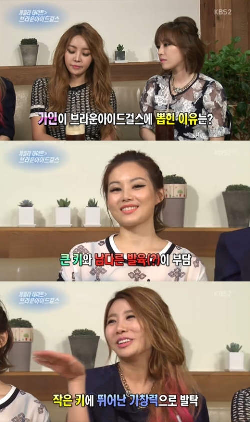 브라운아이드걸스의 멤버들이 가인을 영입한 이유로 '작은 키'를 꼽아 화제를 모으고 있다.