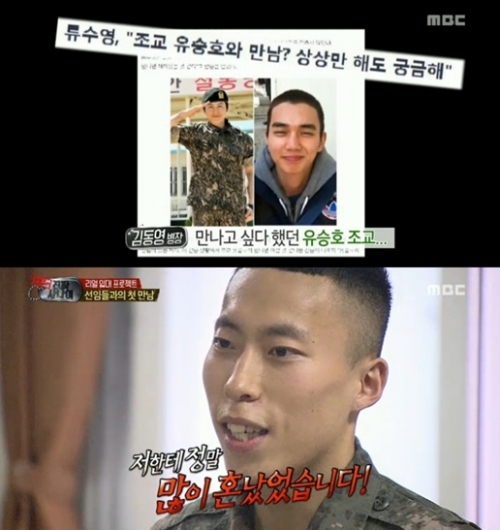 서로에 대해 소개하는 시간 김동영 병장은 “류수영 이병이 만나고 싶어했던 유승호 조교, 저한테 정말 많이 혼났습니다. 어느 누구도 열외는 없습니다”라고 말했다.