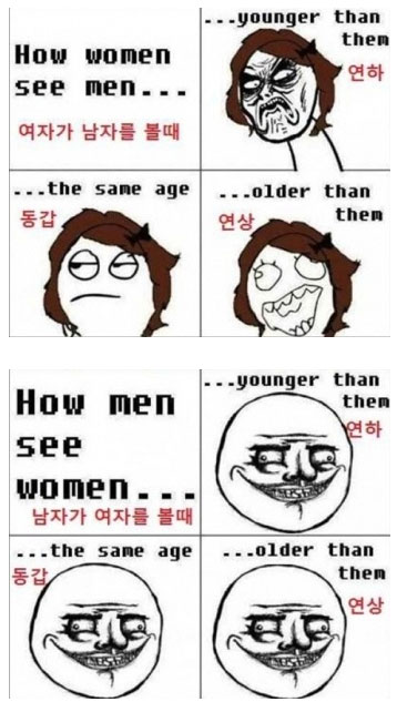 반면 남자는 자기보다 연상 이건 동갑이건 연하건 똑같이 음흉한 눈빛으로 바라보고 있어 웃음을 유발한다.