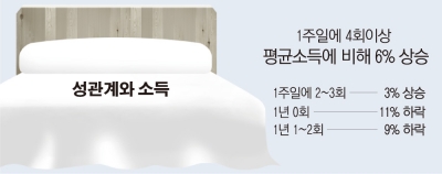 1년에 1~2회의 성관계를 갖는 사람은 평균에 비해 9% 적은 소득을 올리는데 그쳤다.
