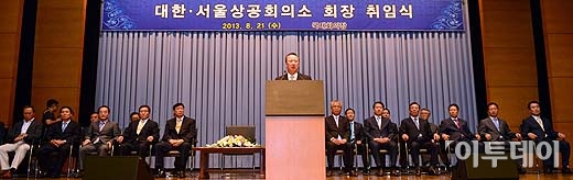 박용만 대한상공회의소 신임회장이 21일 오후 서울 중구 남대문로 상의회관에서 열린 ‘대한ㆍ서울 상공회의소 회장 취임식’에서 취임사를 하고 있다.방인권 기자 bink7119@