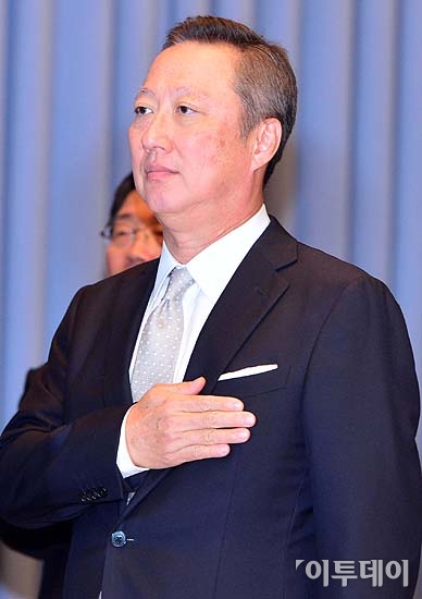 박용만 대한상공회의소 신임회장이 21일 오후 서울 중구 남대문로 상의회관에서 열린 ‘대한ㆍ서울 상공회의소 회장 취임식’에서 국민의례를 하고 있다. 방인권 기자 bink7119@