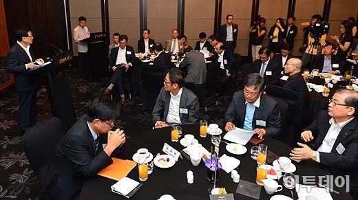 최수현 금융감독원장이 22일 오전 서울 영등포구 여의도동 콘래도호텔에서 열린 ‘여신금융회사 대표이사 간담회’에 참석해 모두발언을 하고 있다. 방인권 기자 bink7119@