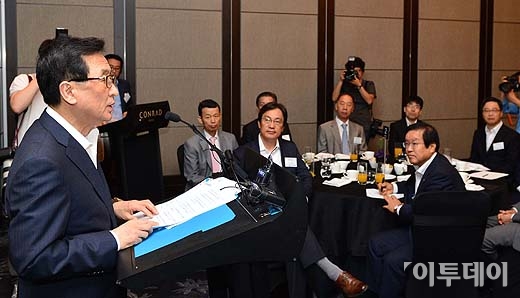 최수현 금융감독원장이 22일 오전 서울 영등포구 여의도동 콘래도호텔에서 열린 ‘여신금융회사 대표이사 간담회’에 참석해 모두발언을 하고 있다. 방인권 기자 bink7119@