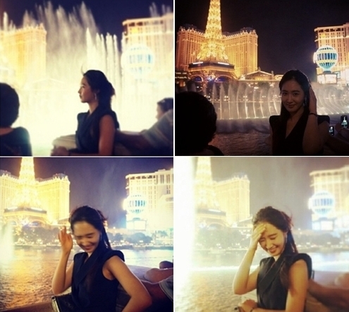 유리는 23일 자신의 SNS에 "분수쇼 이쁘다. 감상 중인데 물이 튀어. 하니 닮았나? 물 때문이야"라는 말과 함께 분수쇼를 감상하고 있는 자신의 모습을 올렸다.