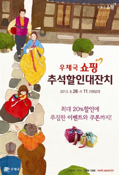 미래창조과학부 우정사업본부는 28일부터 다음 달 11일까지 ‘우체국쇼핑 추석 할인대잔치’를 열고 팔도특산물 5500여종의 상품을 최대 20% 할인 판매한다고 27일 밝혔다.