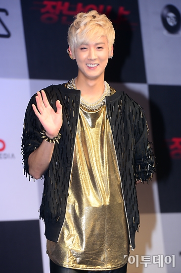 그룹 틴탑의 미니앨범 ‘틴탑 클래스’ 발매기념 쇼케이스가 27일 오후 한강시민공원 잠원지구 프라디아에서 열려 천지가 취재진에게 포즈를 취하고 있다. 노진환 기자 myfixer@