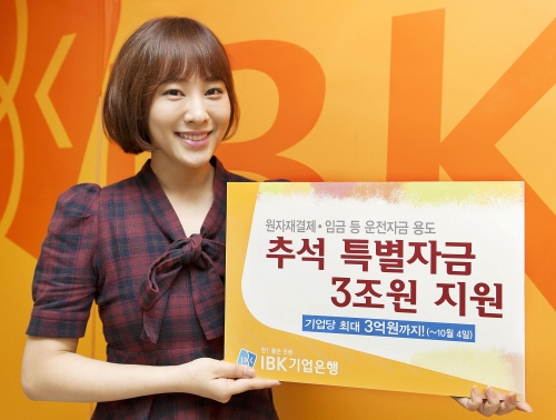기업은행 관계자는 “경기침체와 내수부진에 따른 매출감소 등으로 어려움을 겪고 있는 중소기업을 위해 올해 추석 특별자금은 지난해보다 1조원 늘려 공급할 것”이라며 “즐거운 추석을 보내는 데 작게나마 도움이 되기를 바란다”고 말했다.