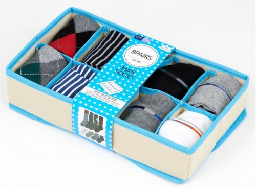 양말 수납함(300㎜*165㎜*70㎜)은 부직포 재질의 접이식 패키지로 서랍장이나 붙박이장 내부에 넣어 정리할 수 있도록 양말 10개를 수납할 수 있는 소형 사이즈로 제작했다.