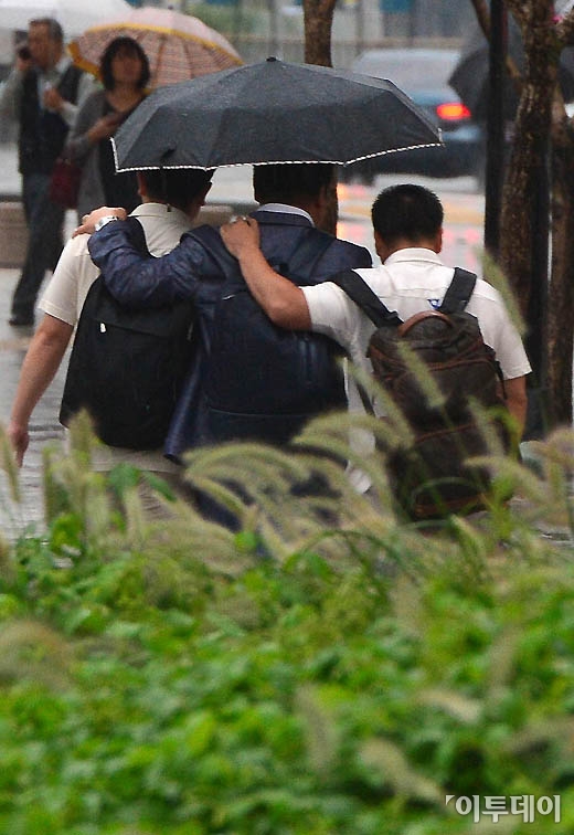 늦더위를 식혀주는 비가 내린 29일 서울 광화문역 인근에서 시민들이 빗줄기를 피해 출근길을 서두르고 있다. 기상청은 중부지방에 오늘 낮까지, 남부지방에는 내일 오전까지 국지적으로 강하게 비가 오내린 후 기온이 뚝 떨어질 것으로 전망했다. 양지웅 기자 yangdoo@