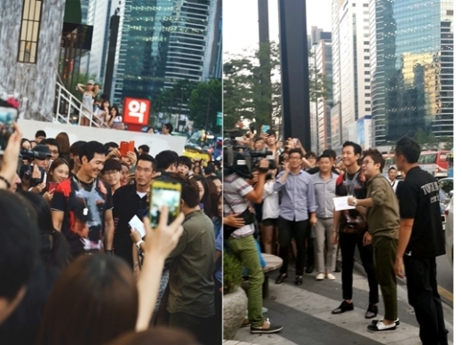 강남역 한복판에 나타난 이정재의 모습에 팬들이 환호성을 지르며 핸드폰 카메라로 그의 모습을 담기 바빴다는 소속사 설명이다.
