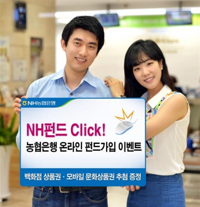 NH농협은행은 스마트뱅킹을 통한 가입대상 펀드를 대폭 확대하고 인터넷 및 스마트뱅킹 펀드 가입 대고객 이벤트 'NH펀드 Click!'을 10월 31일까지 실시한다고 2일 밝혔다.