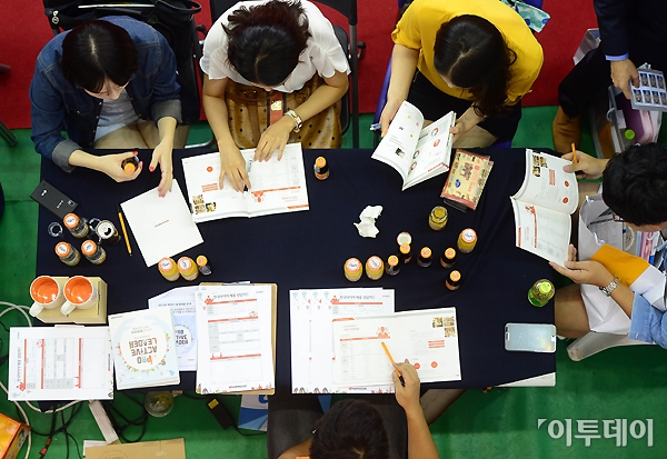 중앙대학교 2013 취업박람회가 2일 오후 동작구 중앙대학교 흑석캠퍼스 체육관에서 열렸다. 박람회장을 찾은 학생들이 취업상담을 받고 있다. 이날 열린 취업박람회에는 삼성, LG, 두산, SK, 한국가스공사 등 120여 곳의 대기업 및 공기업이 참가했다. 노진환 기자 myfixer@