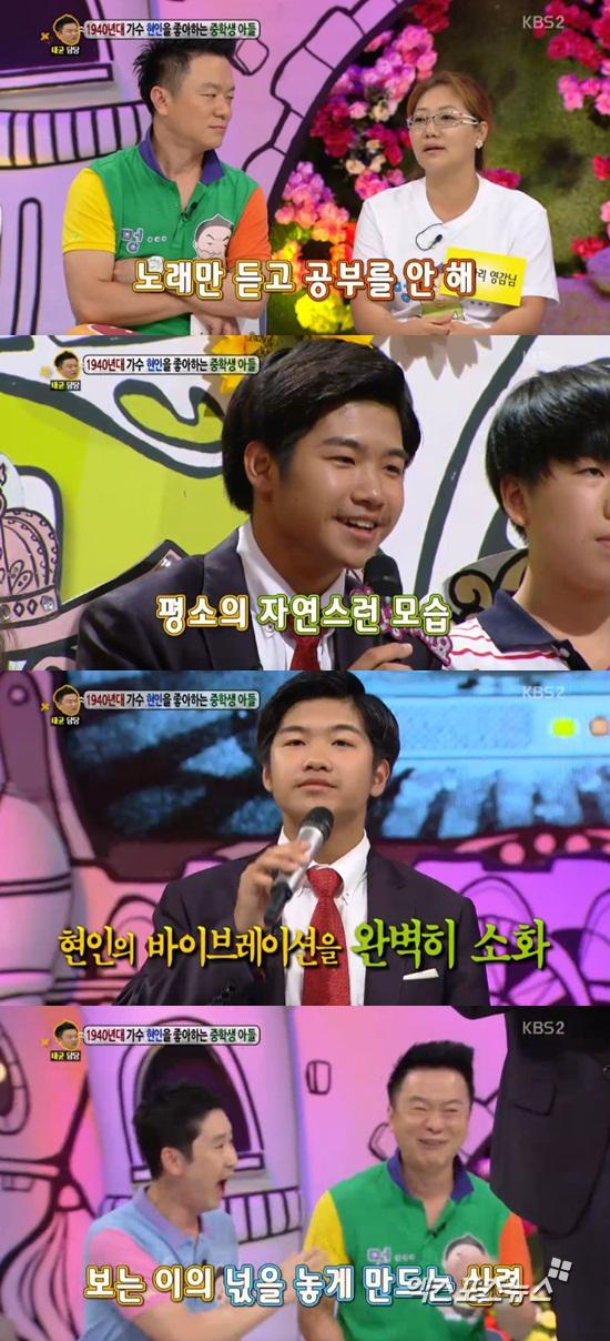 2일 방송된 KBS 2TV '안녕하세요'에 출연한 사연의 주인공은 "15살짜리 아들은 현인 할아버지에게 푹 빠졌다며 고민을 털어놨다.