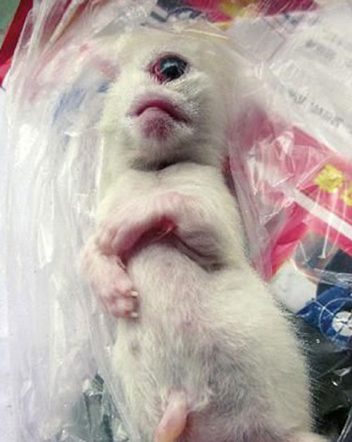중국서 눈은 하나에 코가 없는 고양이가 태어났다. 중국매체인 화서도시보에 따르면 지난달 30일 중국 네이장시 중구에 사는 왕모씨가 기르는 고양이가 낳은 3마리의 새끼 가운데 1마리가 눈은 한 개에 코가 없는 모습으로 태어났다. 기이한 모습의 새끼 고양이는 눈이 일반 고양이보다 훨씬 커서 '하늘눈고양이'라는 이름이 붙여졌으나 동물병원으로 옮겨지던 중 죽었다.