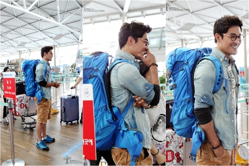 사진 속 한정수는 데님 셔츠와 베이지색 카고 바지를 입고 여행용 푸른색 배낭, 운동화, 뿔테 안경을 매치해 캐주얼 하면서도 스타일리시한 상남자 공항패션을 선보였다.