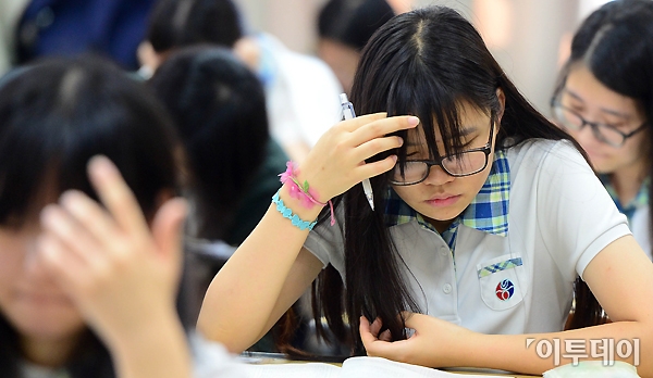 2014학년도 대수능 9월 모의평가가 실시된 3일 오전 종로구 필운동 배화여자고등학교에서 3학년 학생들이 진지하게 시험을 치르고 있다. 노진환 기자 myfixer@
