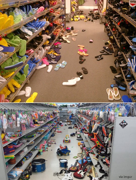사진 속 마트에는 물건들이 마구 흩어져 있다.